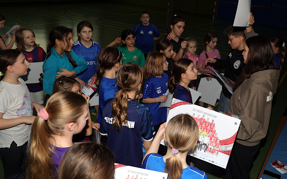 Bevor es zu den Eltern zurückging, bekamen die Mädels von Jasmin Eder Autogrammkarten und Poster vom Frauennationalteam überreicht: „Ich bin immer wieder überwältigt, was hier im Polgargymnasium entstanden ist, und diese Euphorie freut mich.“