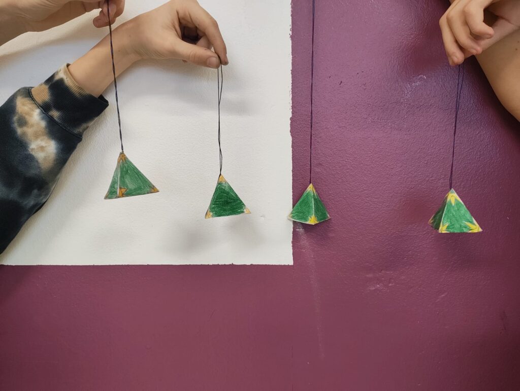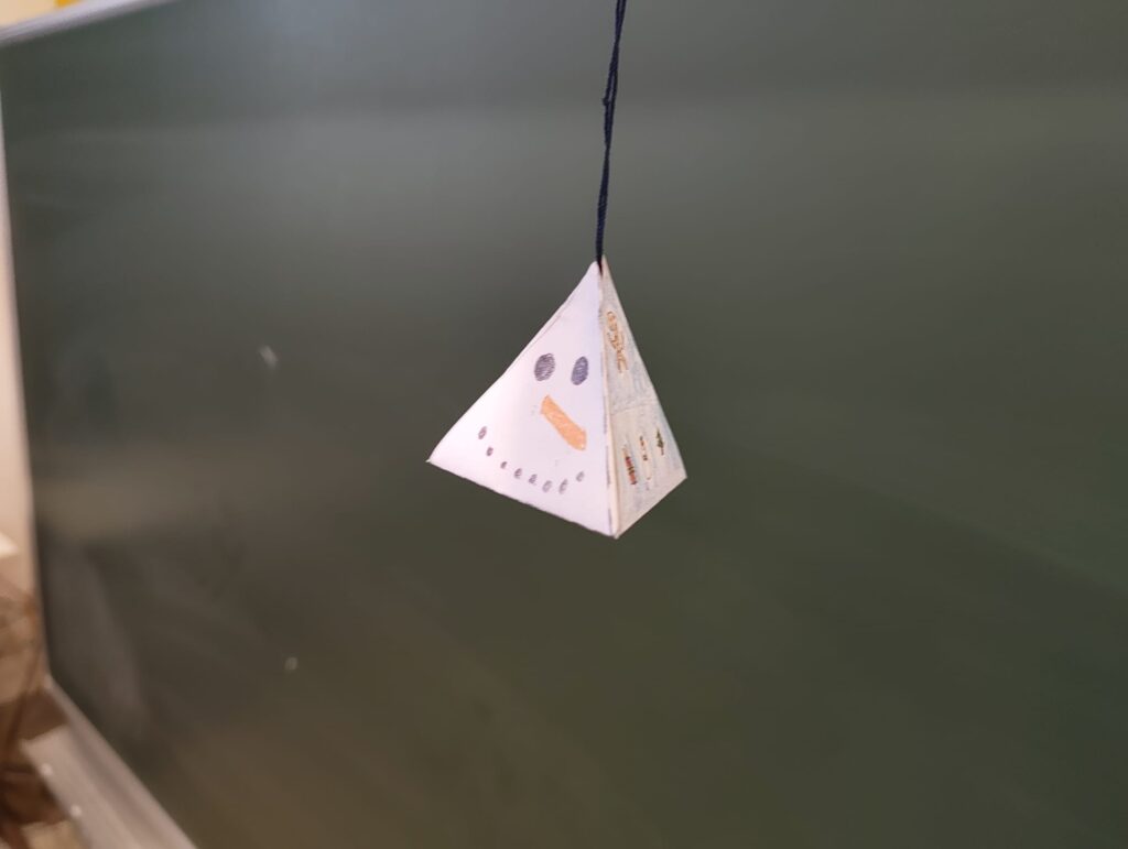 Die 4F hat im Rahmen des GZ-Unterrichts winterliche Dekoration in Form von Tetraedern (und einer 5-seitigen Pyramide) gebastelt.