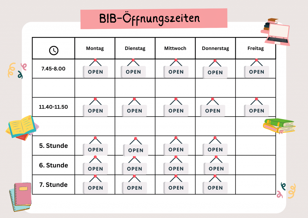 Öffnungszeiten der Schulbibliothek im Schuljahr 2025/26