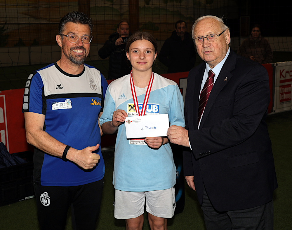 Bei der Siegerehrung gab es noch eine große Überraschung: Im Namen des Wiener Fußballverbandes, der auch mit dem Polgargymnasium in Kooperation steht, wurden die siegreichen Mädels und Schulen mit je zwei Erima-Bällen und einem Kuvert mit einem Gutschein für Erima-Sportutensilien beschenkt.